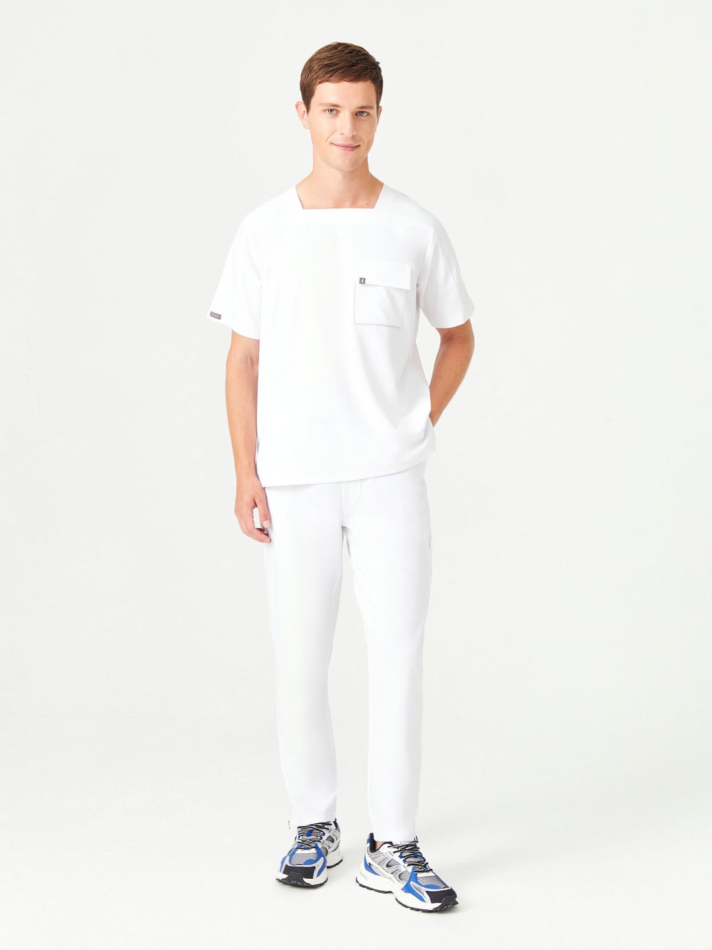 02 Erkek Kare Yaka Scrub Üst - Beyaz