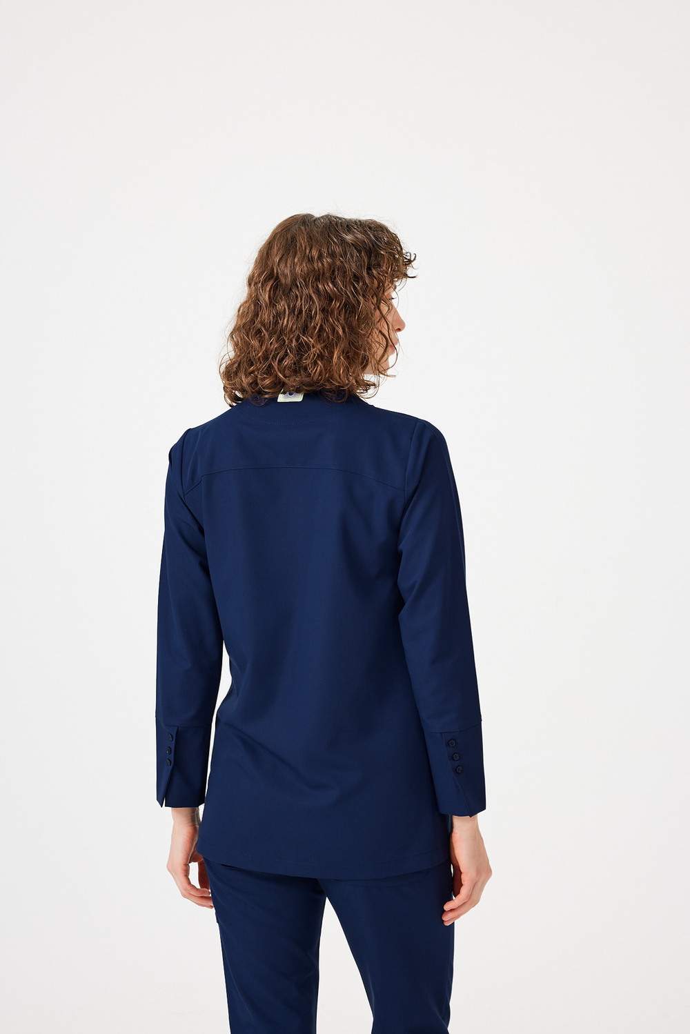 Takma Uzun Kol, Gizli Fermuar Detaylı Ön Pat, 6 Düğmeli Manşet Tasarımı, 2 Adet Yan Fleto Cep, 1 Adet Göğüs Cebi, Tunik Boyu 80 cm, Ensede Citius-Fortius-Altius Koleksiyon Etiketi
