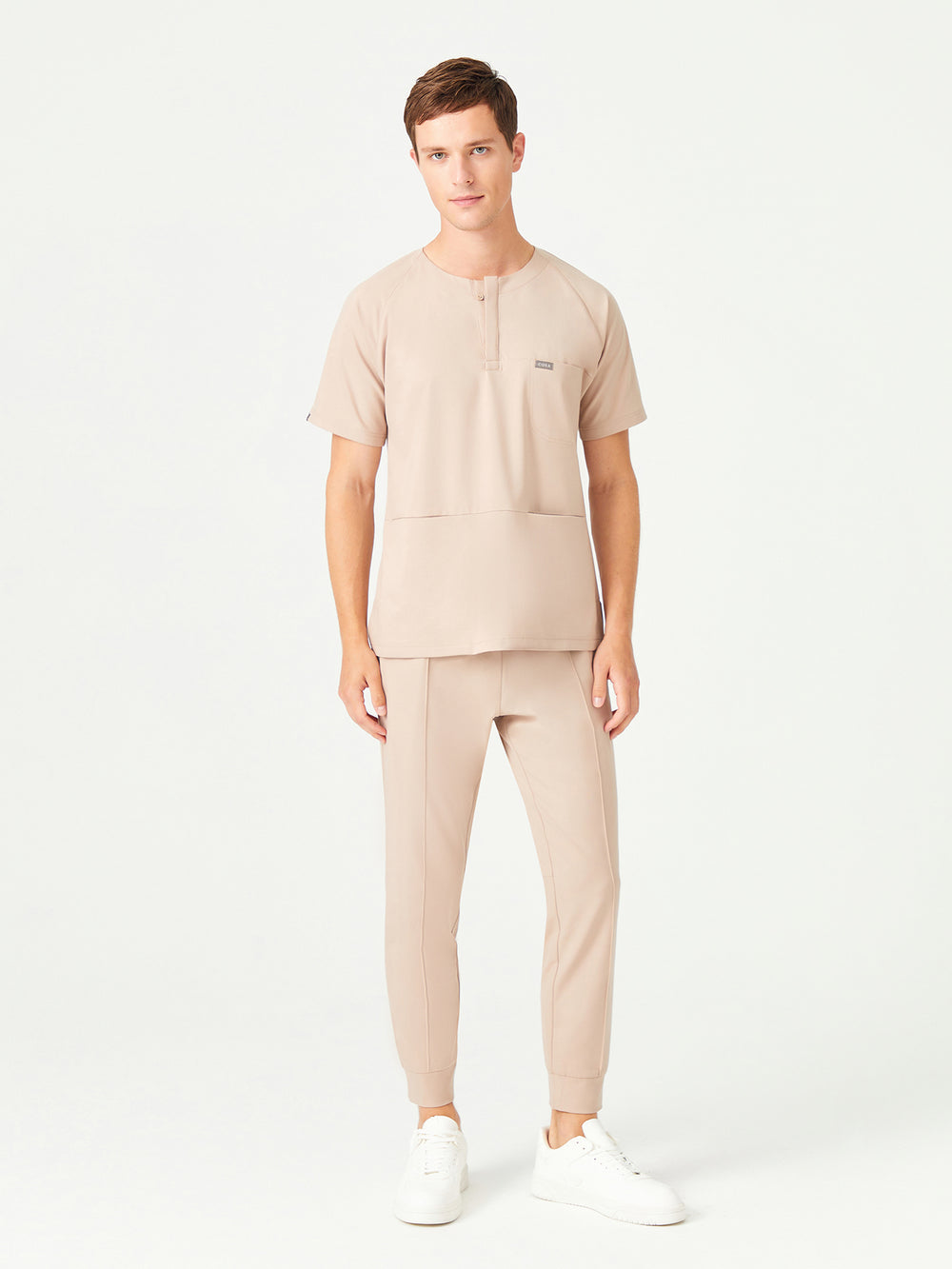 01 Erkek Nervürlü Ribana Paça Scrub Alt - Bej