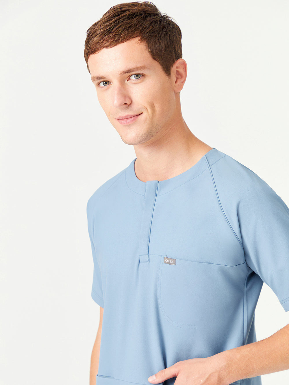 01 Erkek Sıfır Yaka Patlı Scrub Üst - Kozmik Mavi