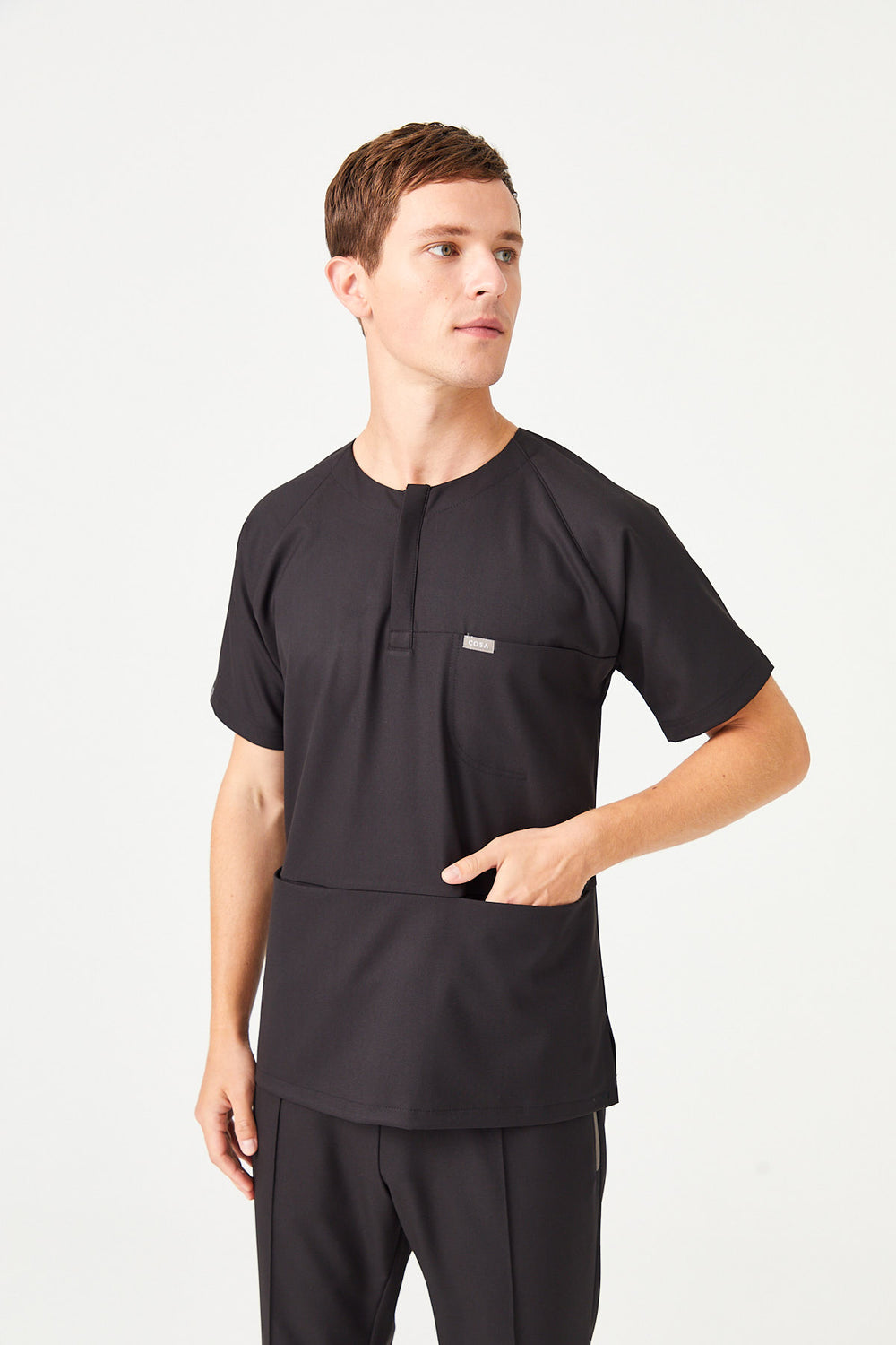 01 Erkek Sıfır Yaka Patlı Scrub Üst - Siyah