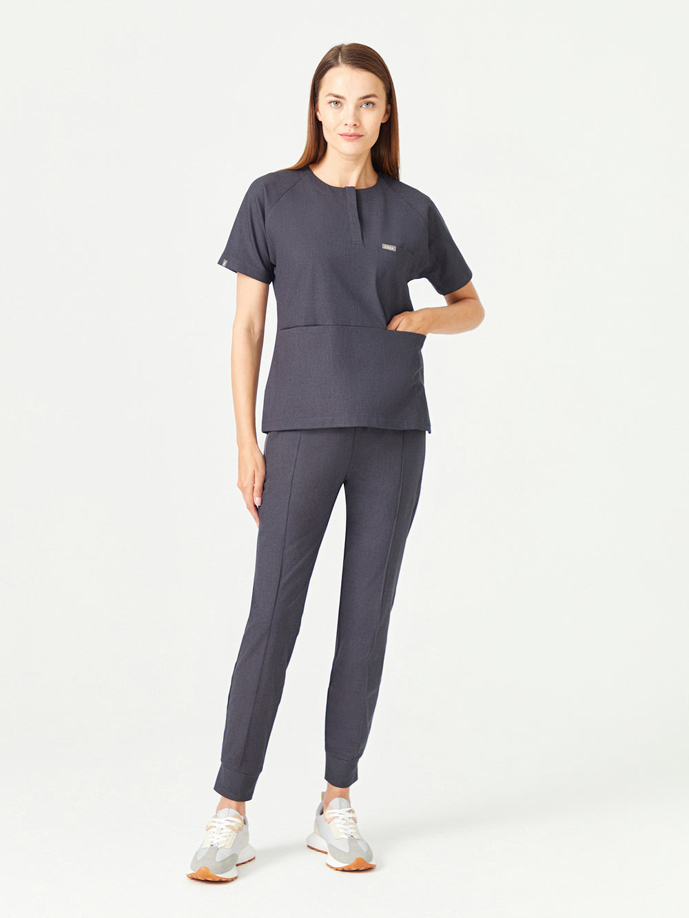 01 Kadın Nervürlü Ribana Paça Scrub Alt - Antrasit