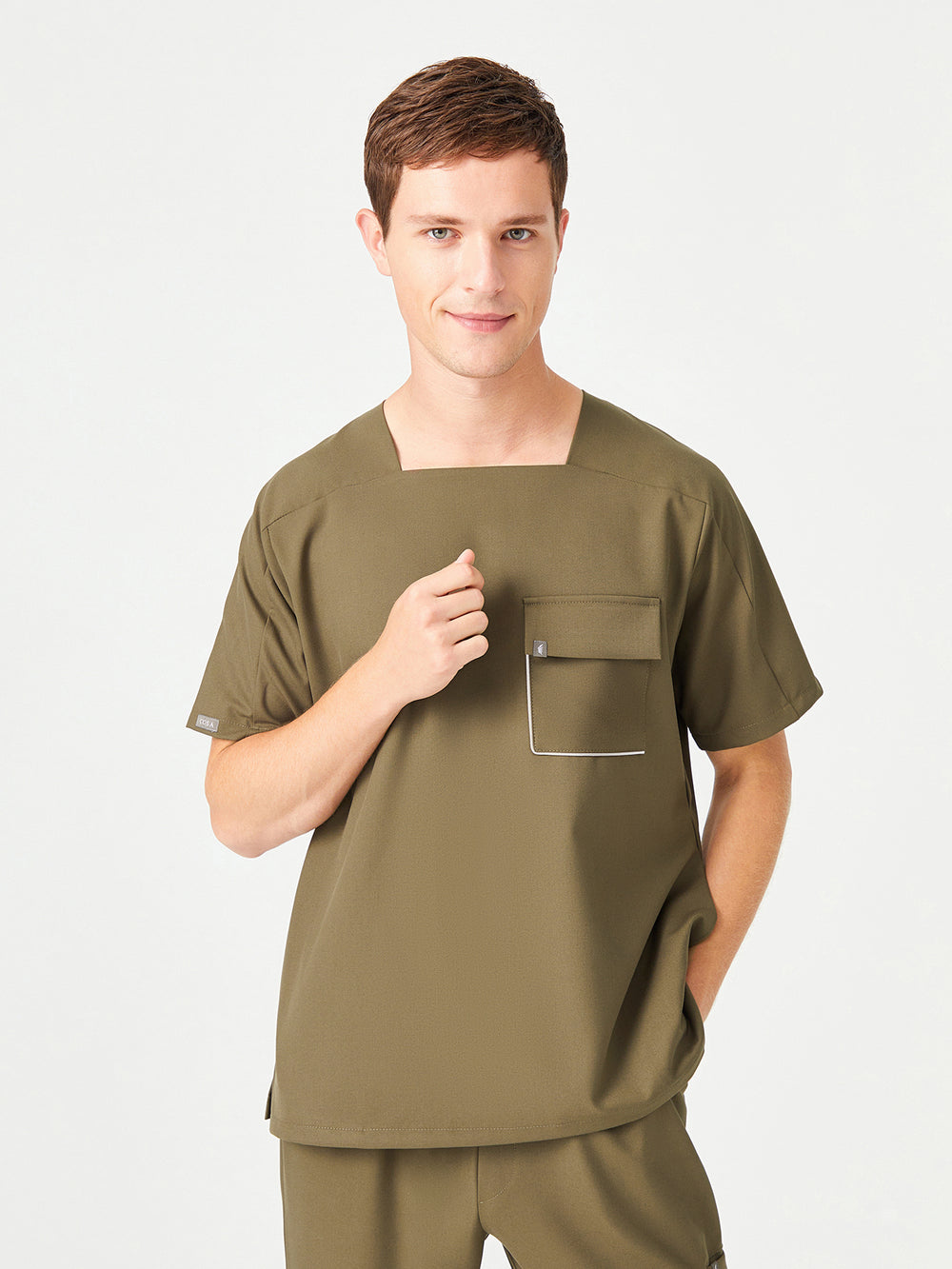 02 Erkek Kare Yaka Scrub Üst - Haki Yeşil