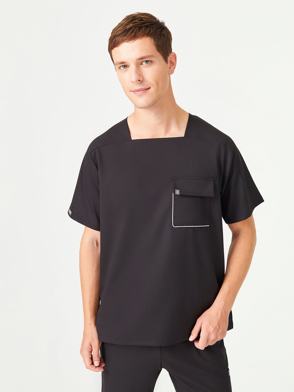 02 Erkek Kare Yaka Scrub Üst -Siyah
